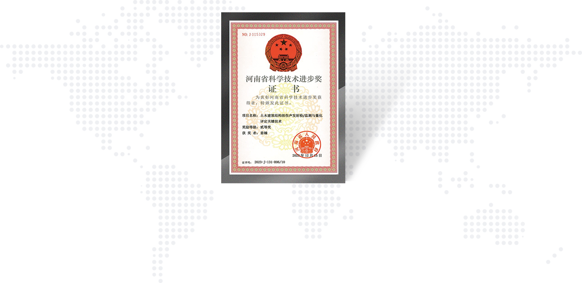 《高速公路桥梁安全声发射监测及延寿方法研究项目》对声发射技术进行了包括桥梁缆索、砌体结构、预应力桥梁、组合结构和装配式结构等方面的研究和应用,开发了缆索结构的波导杆引波技术,形成了缆索结构断丝定位的串并联理论,实现了在低成本的前提下,通过声发射对桥梁缆索结构进行安全监测,可直接降低高速公路桥梁安全声发射监测成本80%以上、降低维护成本40%以上。2023年12月份该项目研究内容“土木建筑结构损伤声发射检/监测与量化评定关键技术”获河南省科学技术进步奖二等奖。