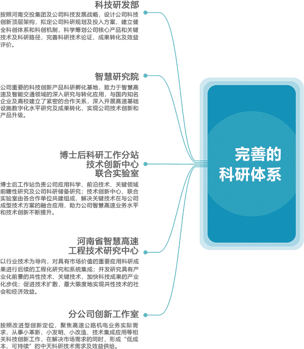 中天公司积极响应科技强国战略,聚焦交通行业发展大需求,紧跟河南交投集团数智赋能行动,围绕基础设施数字化、数智中心建设、智慧高速建设、智慧港口建设、数字新能源、信创国产化替代六个方面打造企业科技创新生态,着力建设河南交投集团科技创新高地、成果转化基地、人才集聚中心。