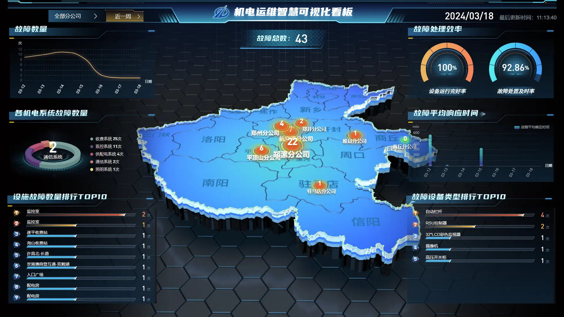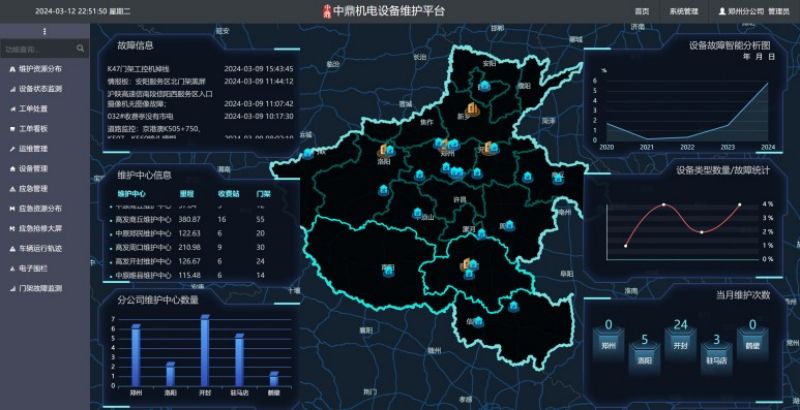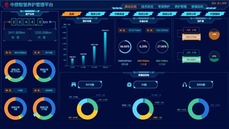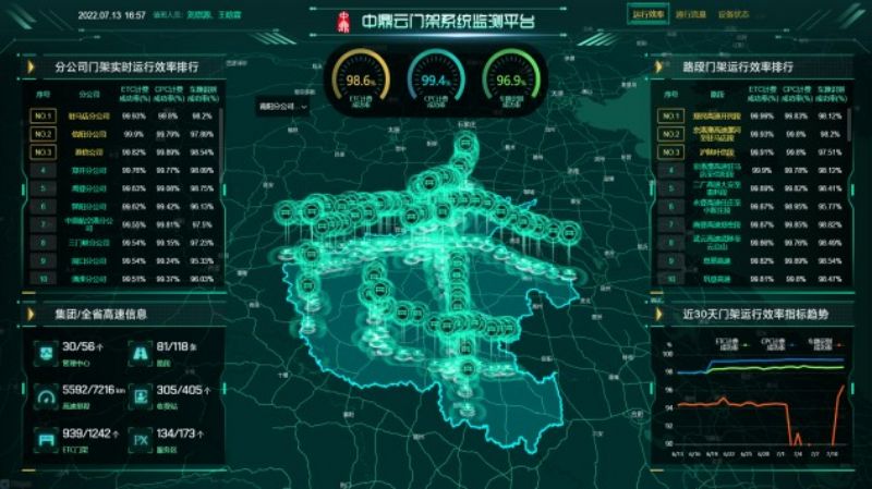 中天公司围绕“高速公路+”多元业务场景,研发了环郑州高速公路运营指挥调度平台、“13445工程”新开工项目数字化管理平台、ETC门架运行监测平台、路产云加勤系统等10余个决策平台,满足高速公路建、管、养、运、服等各方面业务的需求,为提高运营管理效率提供有力保障。
